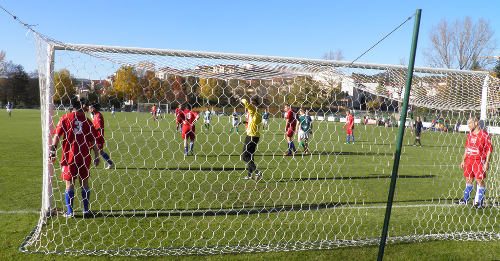 Dans la surface de réparation, l'attaquant est déséquilibré par Flo Marcon qui commet la faute. Le pénalty sera transformé par l'attaquant local. 12e : 1-0.